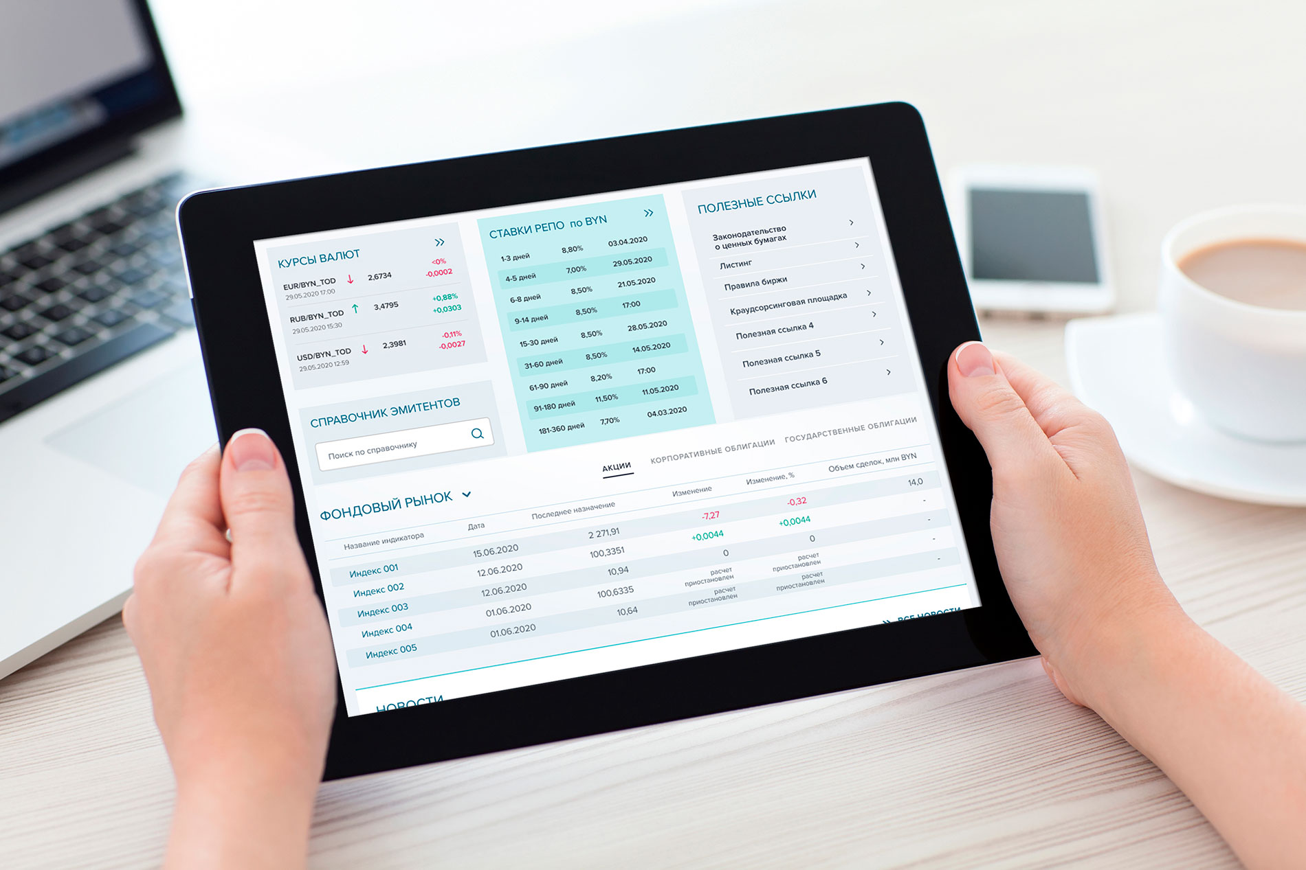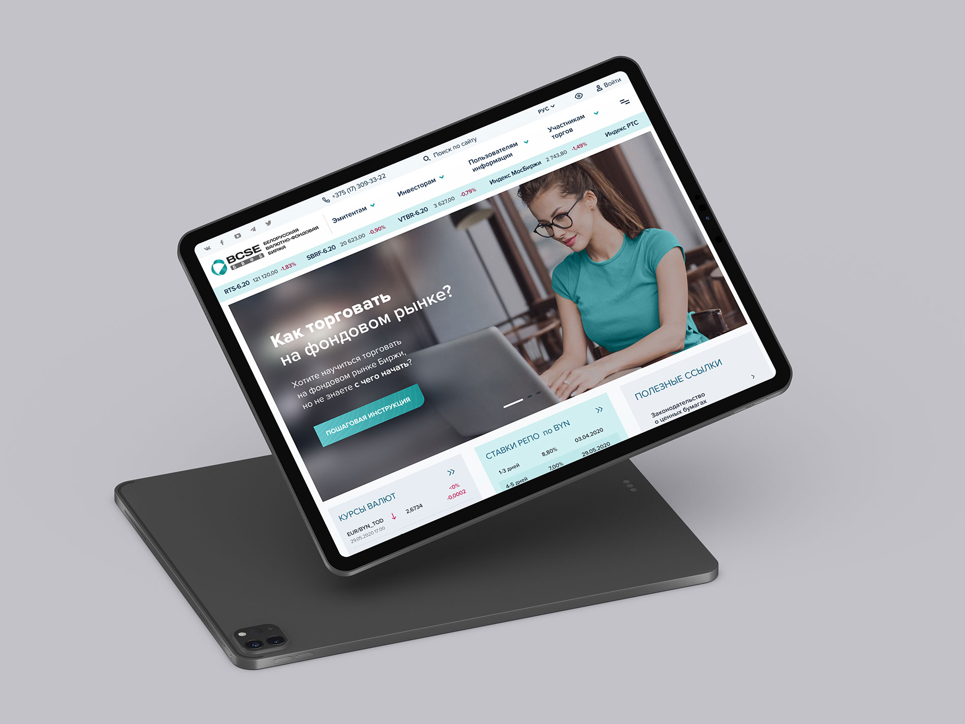 Главная задача в разработке дизайна сайта БВФБ - это понятное и визуально легкое отображение таблиц и графиков по осуществлению организации финансовых рынков, технической и криптографической защиты информации, профессиональной и биржевой деятельности по ценным бумагам, деятельности Национального форекс-центра.